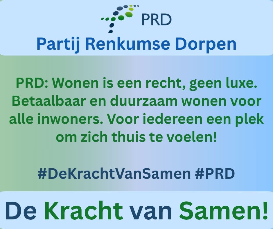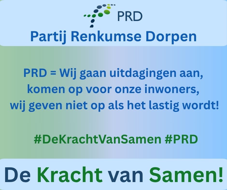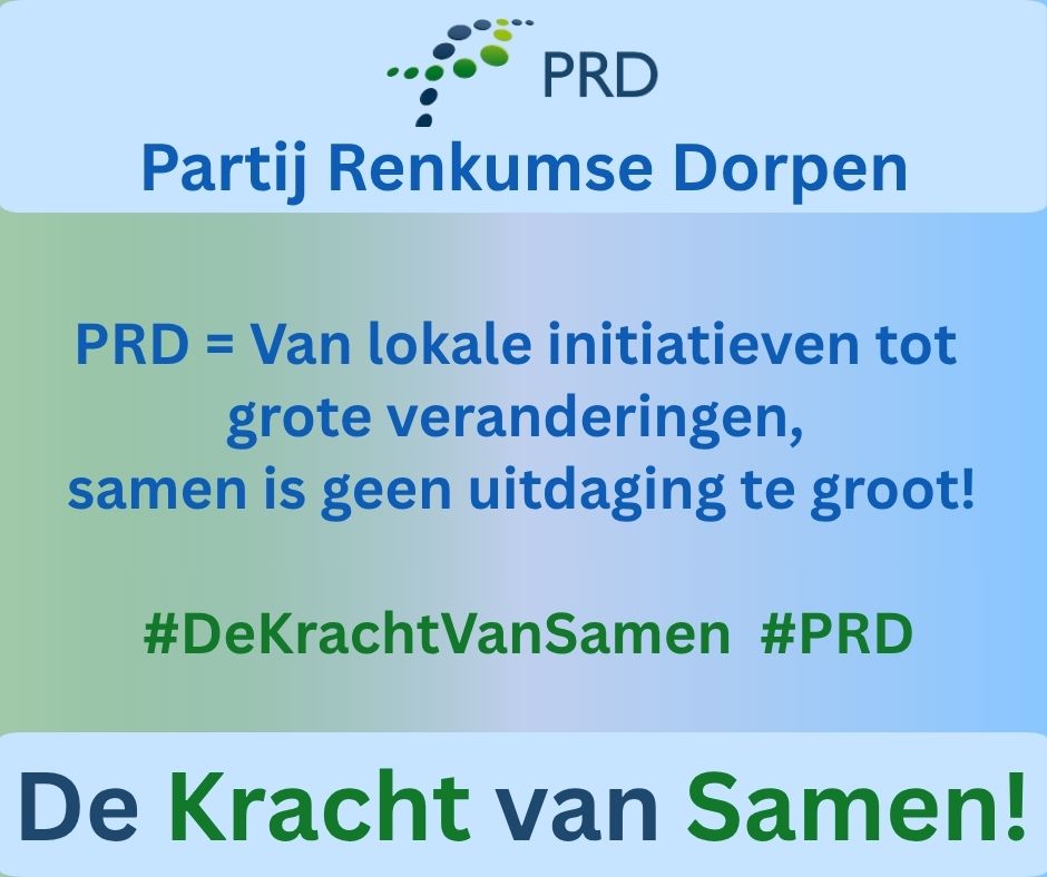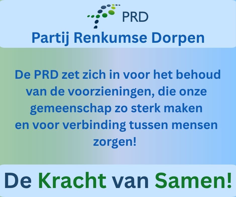 De PRD is een toegankelijke, onafhankelijke partij die zich inzet voor alle inwoners van de zes dorpen in Renkum. Onze fractieleden hebben één doel voor ogen: onze dorpen beter maken voor de mensen die er wonen. We zijn betrokken, luisteren naar wat onze inwoners nodig hebben en staan voor burgerparticipatie. We komen op voor de belangen van de bewoners, eisen transparantie en nakoming van afspraken van het gemeentebestuur.